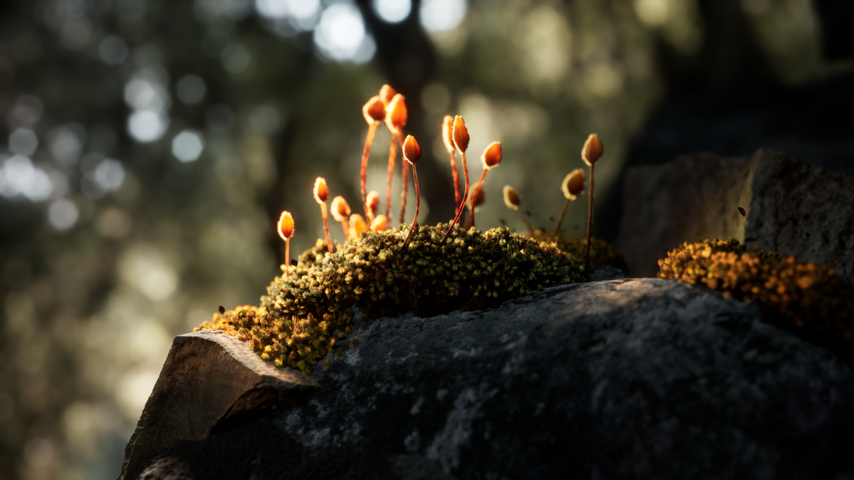 Moss studies with PCG, Substrate and Geometryscripting. I took most inspiration from the specimen "Tortula Inermis" which i found in my backyard. Its would also be possible to swap out individual strand meshes and adjust the system to recreate diffrent specimen. In addition I am exploring animation workflows via PCG here, which works by updating the PCG Graph every Frame and really works great if one wants to produce offline media. Since refreshing the PCG Graph so often it can be quite heavy and is not suited for realtime usage. It still makes for previewing it in edior totally possible tough.