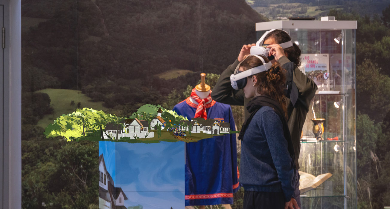 For the 200th anniversary of the arrival of the first German settlers in Brazil, a digital, immersive mixed reality experience was designed and realised for the Kaiserslautern City Museum and the Hunsrück Museum in Simmern. In addition to the analogue exhibitions, the history of emigration and immigration in both Kaiserslautern and Simmern is supplemented and made tangible through virtual formats. For this purpose, 3D printed dioramas were transformed by Meta Quest 3 using Unreal Engine 5 into living dioramas that tell the story of the emigrants from Germany to Brazil.